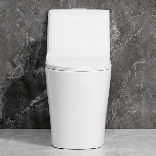 1.1/1.6 Gallons GPF Dual Flush Floor Mounted One-Piece Toilet with Soft-Close Seat In Glossy White