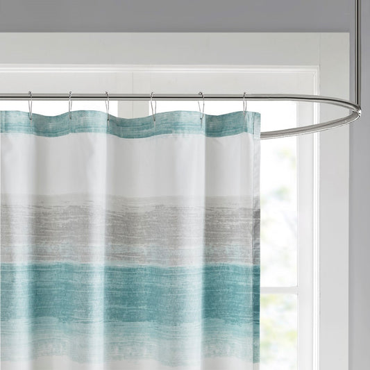 Stripe Print Shower Curtain Aqua/Grey 72x72'