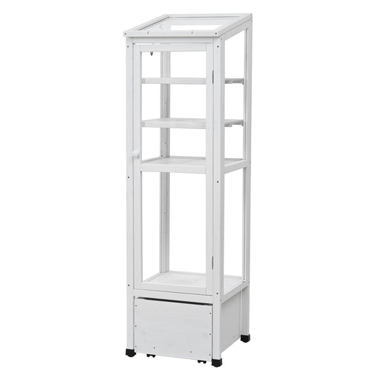 TOPMAX 62.4inch Height Wood Garden Greenhouse Balcony Portable Mini Cold Frame with Movable Storage Box and Adjustable Shelves for Outdoor Indoor Use, White