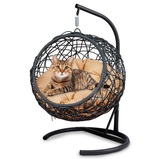 Cat Swing Bed with Stand & Cushion, Cat Egg Chair with Rattan Wicker Appearance, Indoor Hanging Swinging Cat Bed for Cats, Small Dogs, and Small Animals,Brown