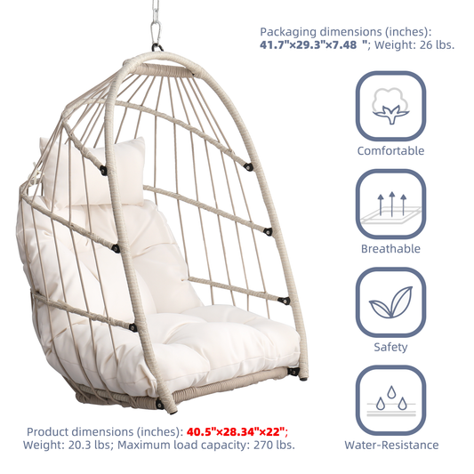 Outdoor Egg Hanging Chair with Stand, Patio Wicker Swing Egg Chair Indoor Swinging Chair Outdoor Hammock Egg Chair Off-white