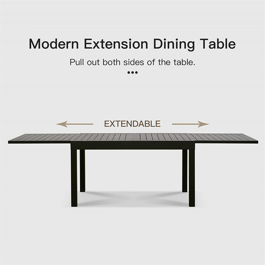 Large Extendable Patio Dining Table, Aluminum Metal Indoor Outdoor 53"- 106" Adjustable for 6-8 Person Rectangular Table for Porch Backyard Balcony Garden (Dark-Brown,1 Table)