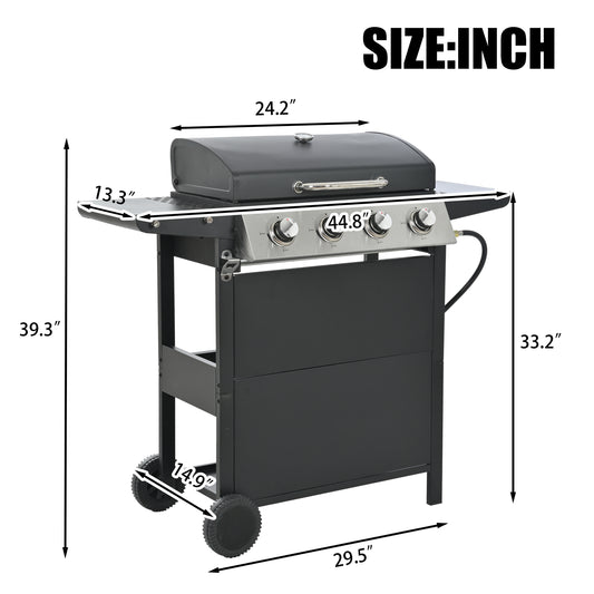 Propane Gas Grill 4 Burner Barbecue Grill, Stainless Steel 34,000 BTU Patio Garden Barbecue Grill with Two Shelves, Lid, Wheels and Bottle Opener