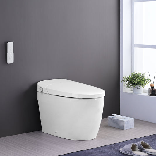 Smart Toilet Bidet Combo with Self-Cleaning Nozzle, Heated Seat, Night Light, Knob Control, Power Outage Flushing, Soft Close, Auto Flush, with Remote Control