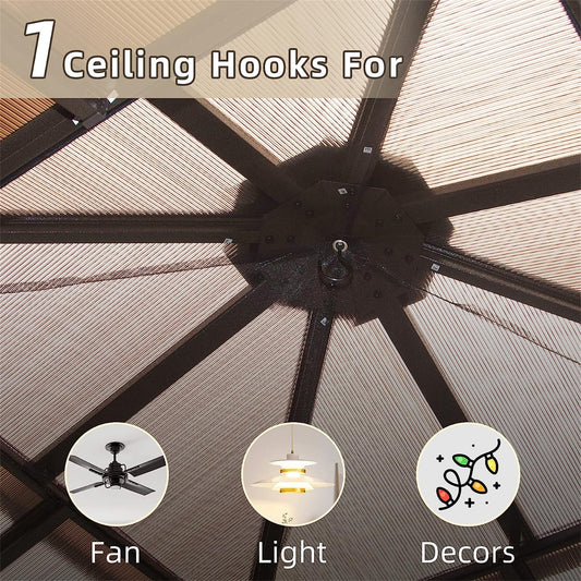 12' X 20' Hardtop Gazebo, Aluminum Metal Gazebo with Galvanized Steel Double Roof Canopy, Curtain and Netting, Permanent Gazebo Pavilion for Party, Wedding, Outdoor Dining, Brown