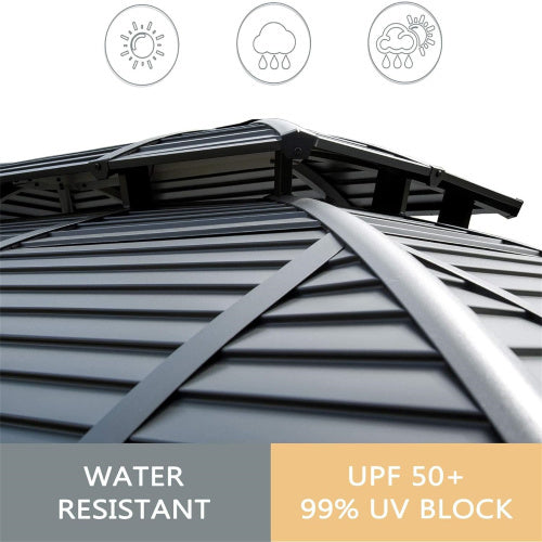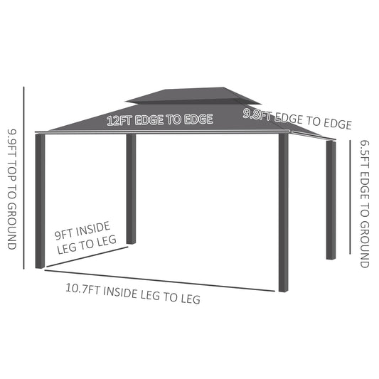 Outdoor Gazebo 10'x12', Permanent Hardtop Gazebo with Aluminum Frame for Patios Deck Backyard, Galvanized Steel Double Roof, Curtains and Netting for Lawns, Garden, Poolside