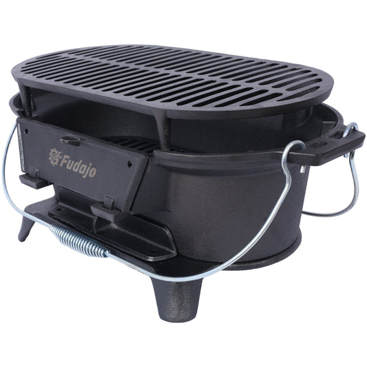 Oval Cast Iron Grill Outdoor, Portable Charcoal Grill and Tabletop Cast Iron Skillet - 100% Cast Iron, Enameled, Durable, Small Charcoal Grill, Camping Stove, Hibachi Grill