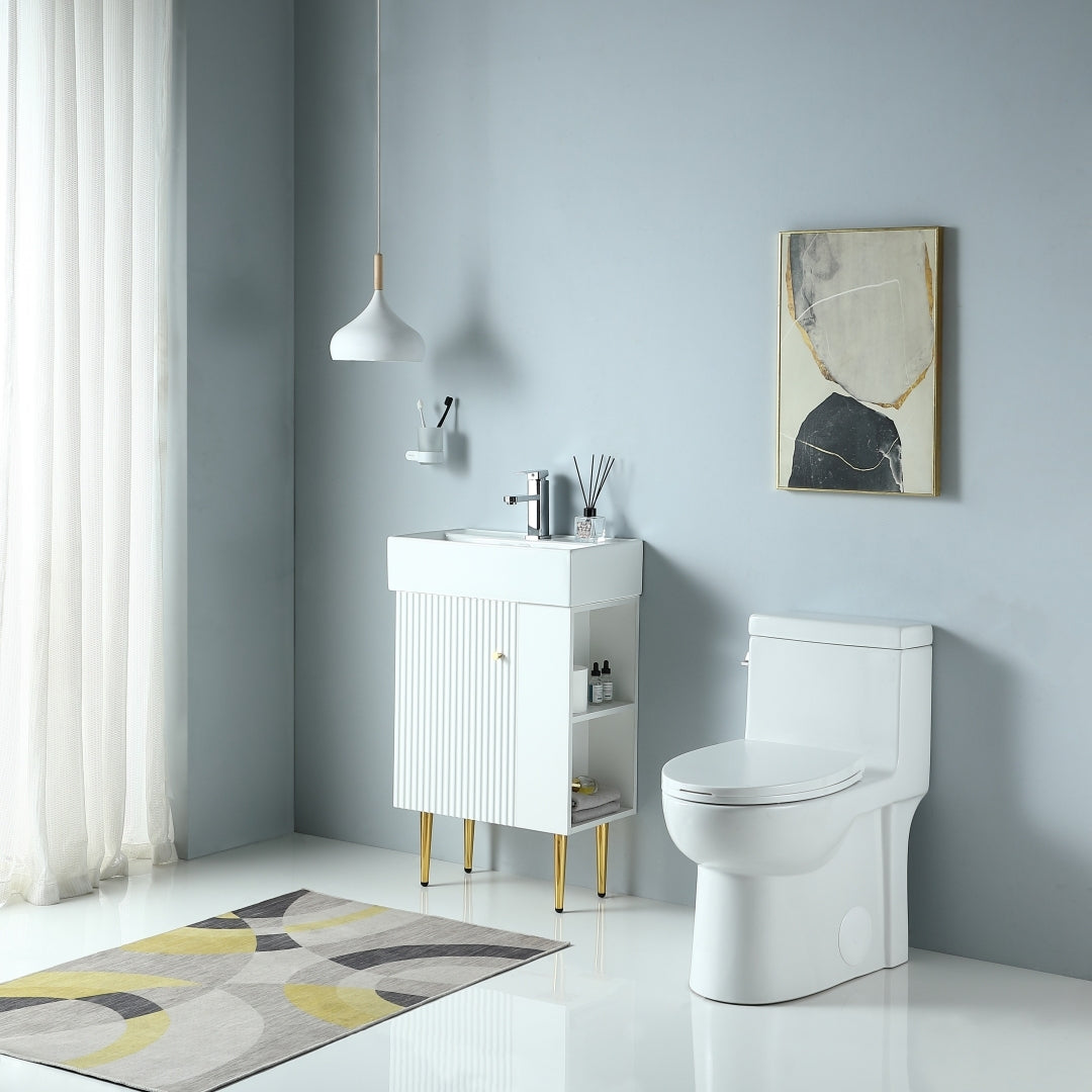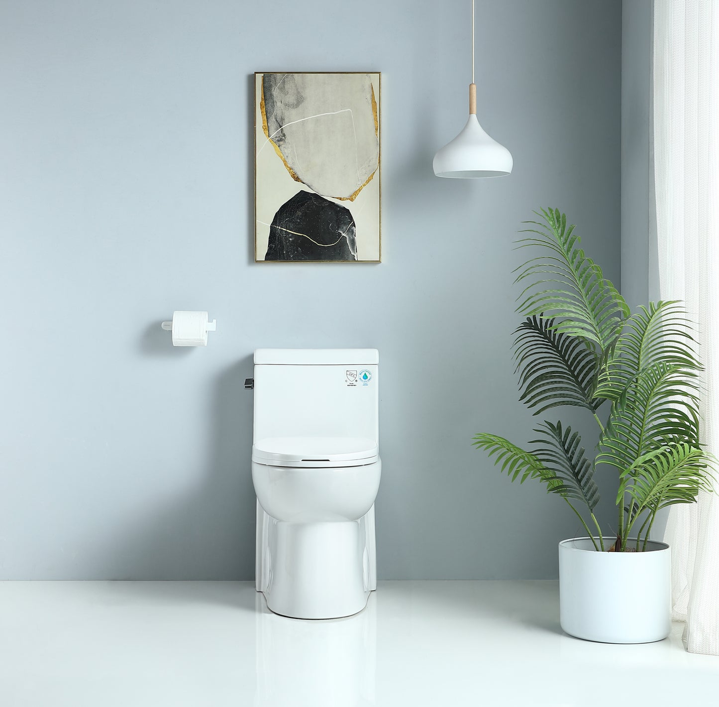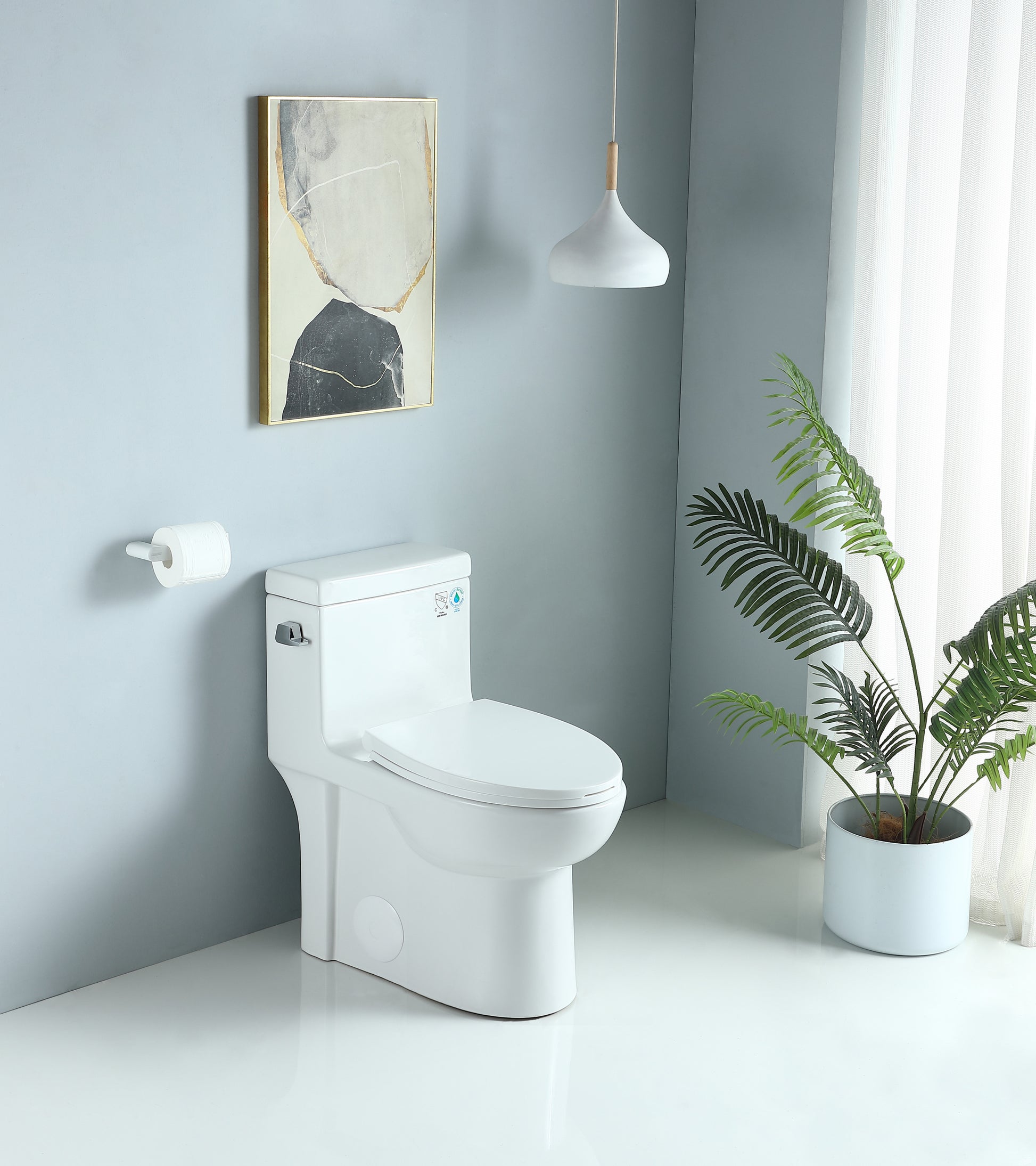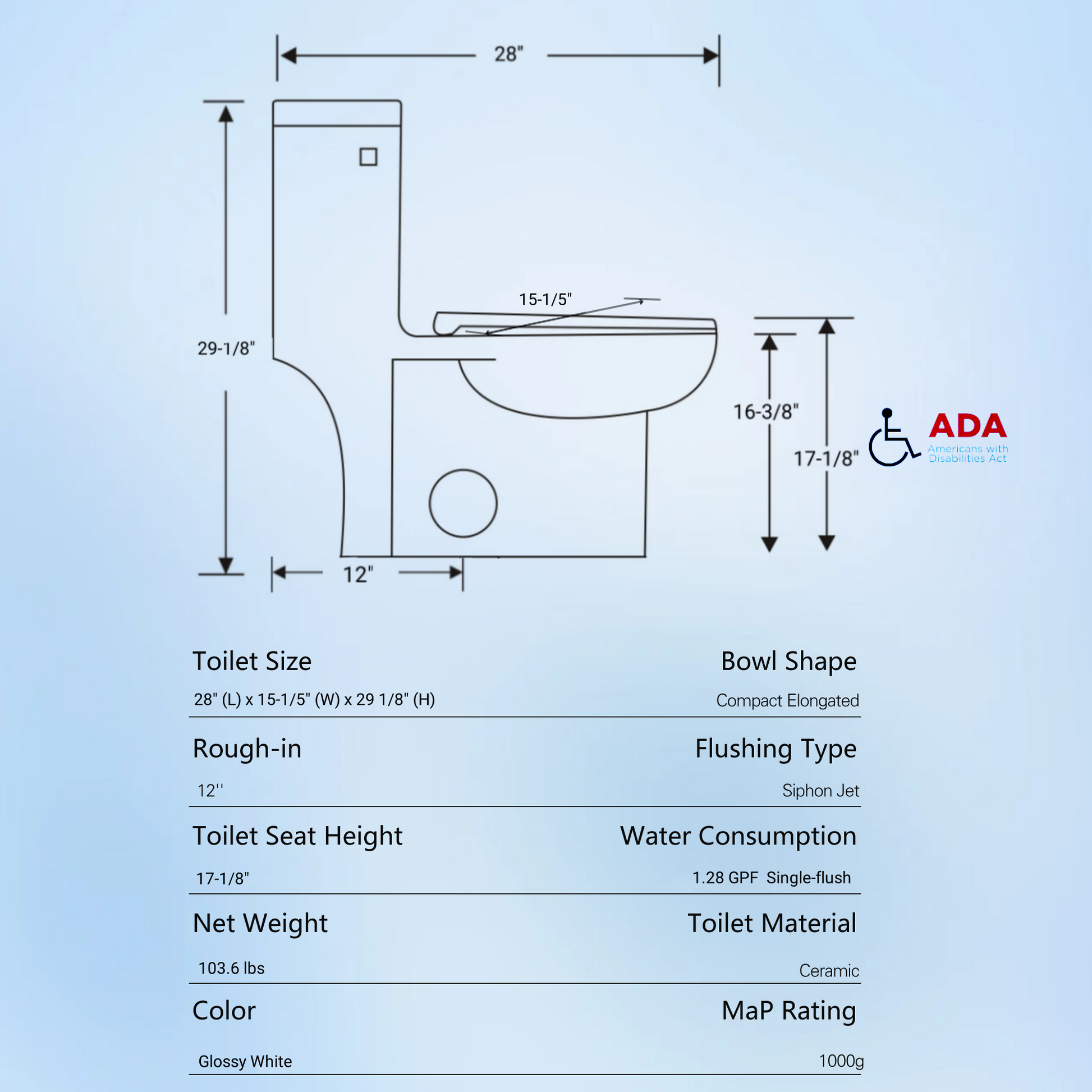 1.28 GPF One Piece Toilet Single Flush , Water-Saving Elongated Comfort Height Floor Mounted, Soft Closing Seat, 1000 Gram Map Flushing Score Toilet, Gloss White 23T03-GW