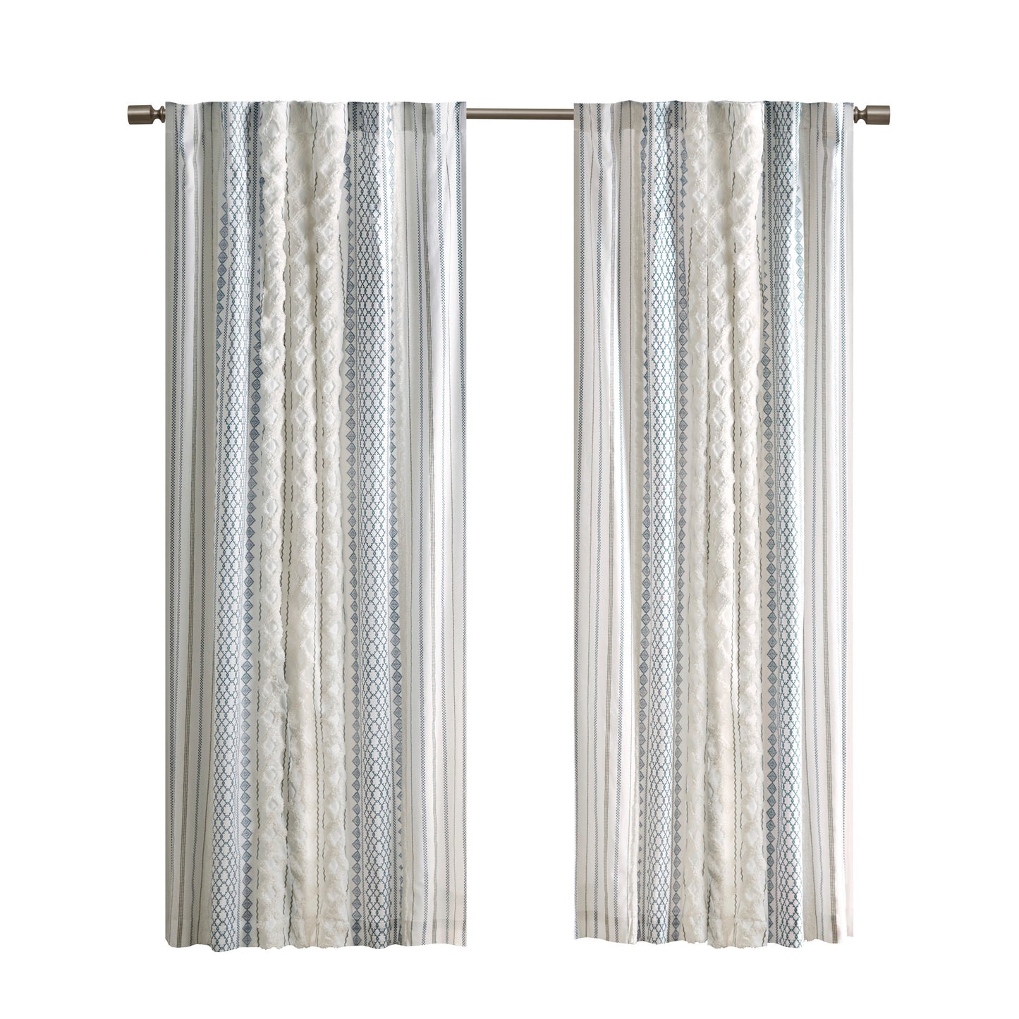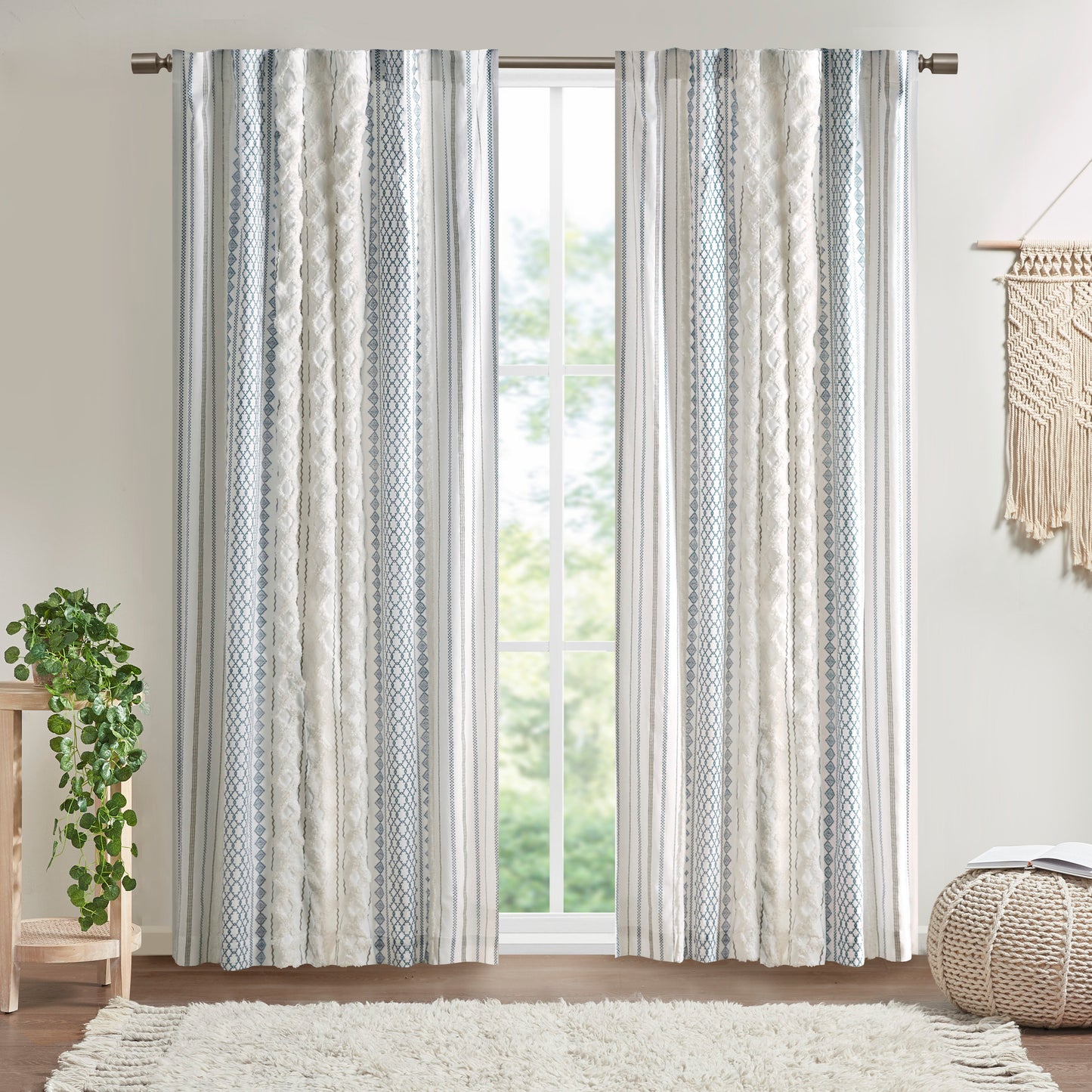 - 100% cotton printed with tufted chenille stripe trim window curtain panel