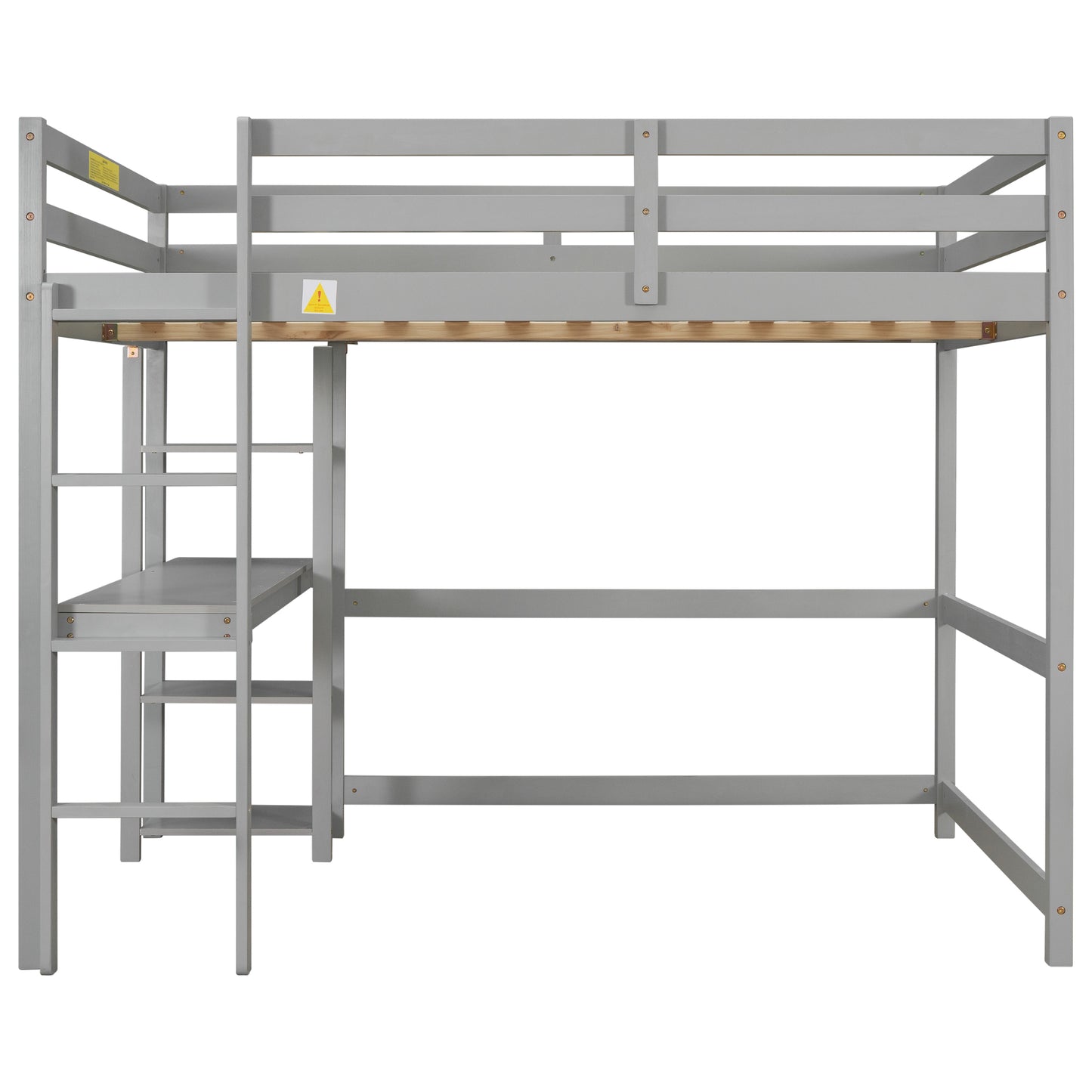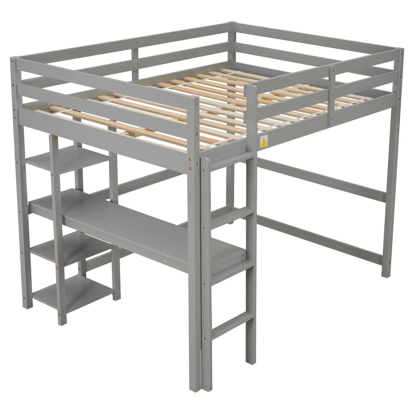 Full Loft Bed with Desk ,Shelves and Ladder, Grey