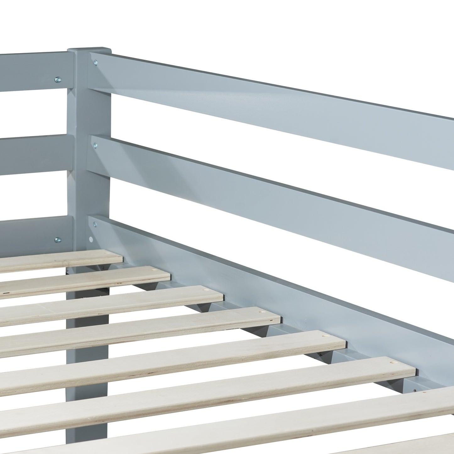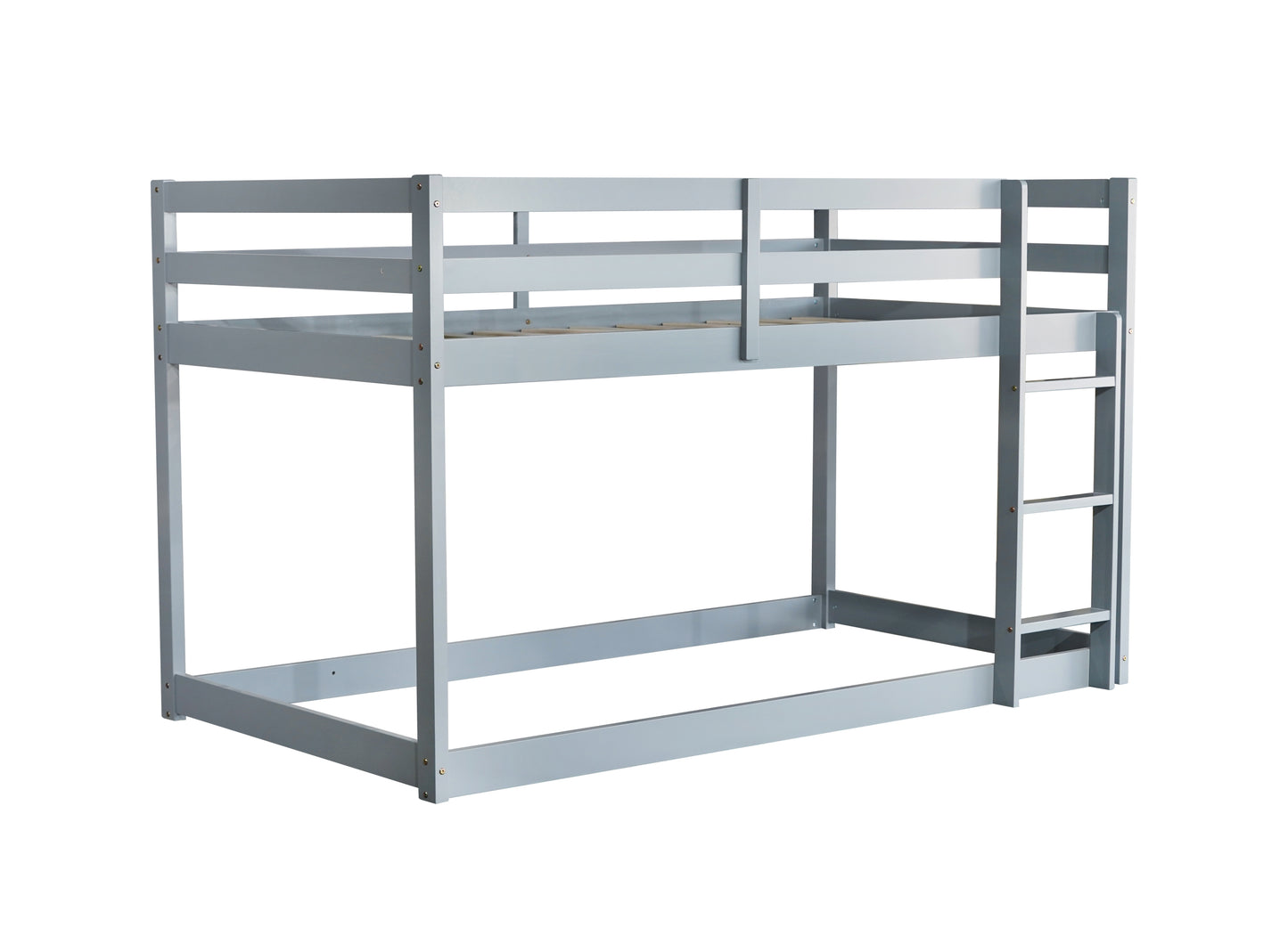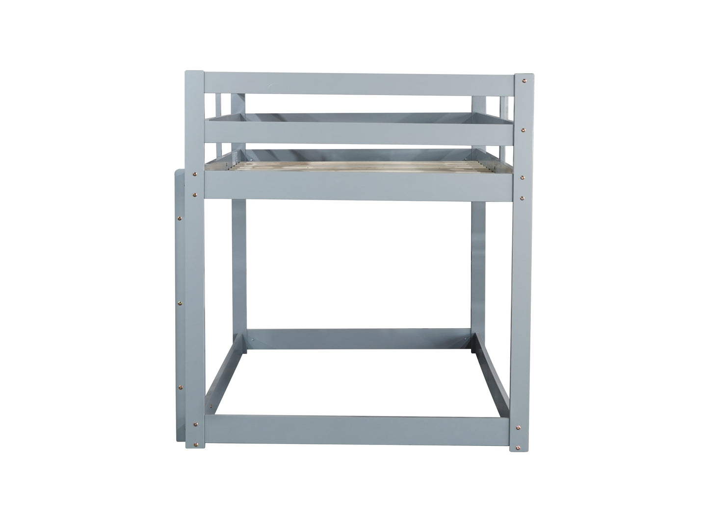 Solid Wooden, Solid Rubber Wooden Twin over Twin Loft Bed with Ladder, with Bed Platform of Strengthened Slats , Grey