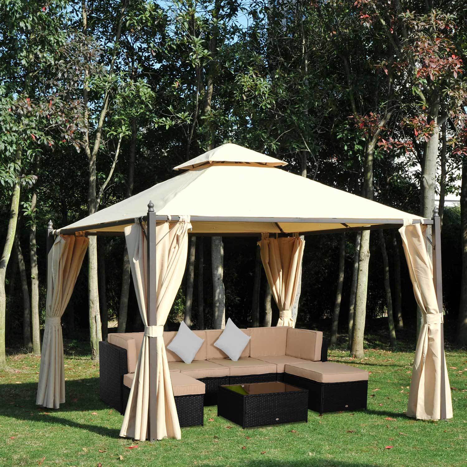 - Outdoor Patio Gazebo: Our patio gazebo features a sleek double canopy, and arrow-tip motifs pepper the top, making it an excellent accent piece for weddings, and other formal outdoor parties. It's elegant enough to function as an outdoor centerpiece yet spacious enough to fit a crowd without feeling cramped. Whether you place it in the backyard or out and about, we have you covered.