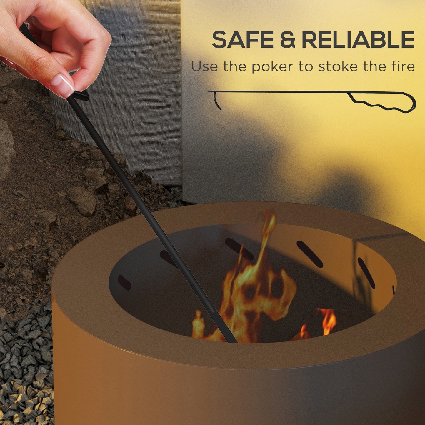 this oxygen is heated as it rises up the walls, causing conditions that allow smoke to burn away, resulting in clean, smokeless fire. - Poker Included: Thoughtfully included is an added fire wood poker. Move logs used for fuel around our round fire pit to ensure a burn-free camping trip while easily maintaining an optimal flame.