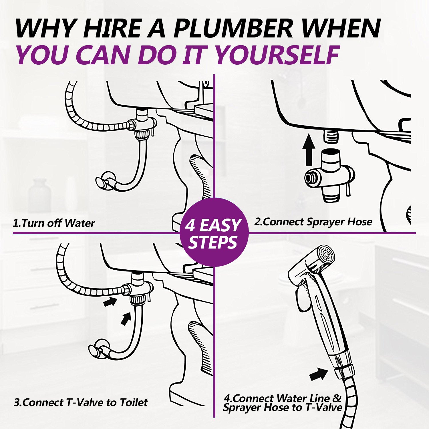 - Easy to Install:n 10 minutes without professional plumbing help, the holder can be mounted on the toilet or a wall.When installing this unit be sure that the water supply valve by your toilet is fully turned off and that there is no flow/leak of water before removing any plumbing components from your toilet.