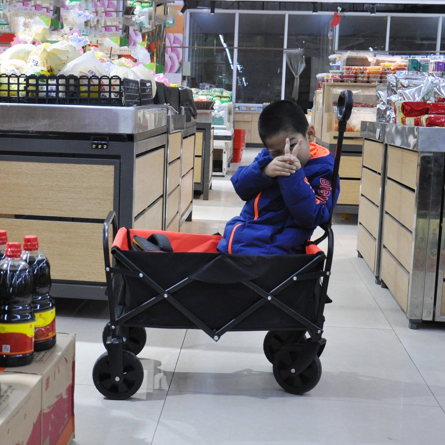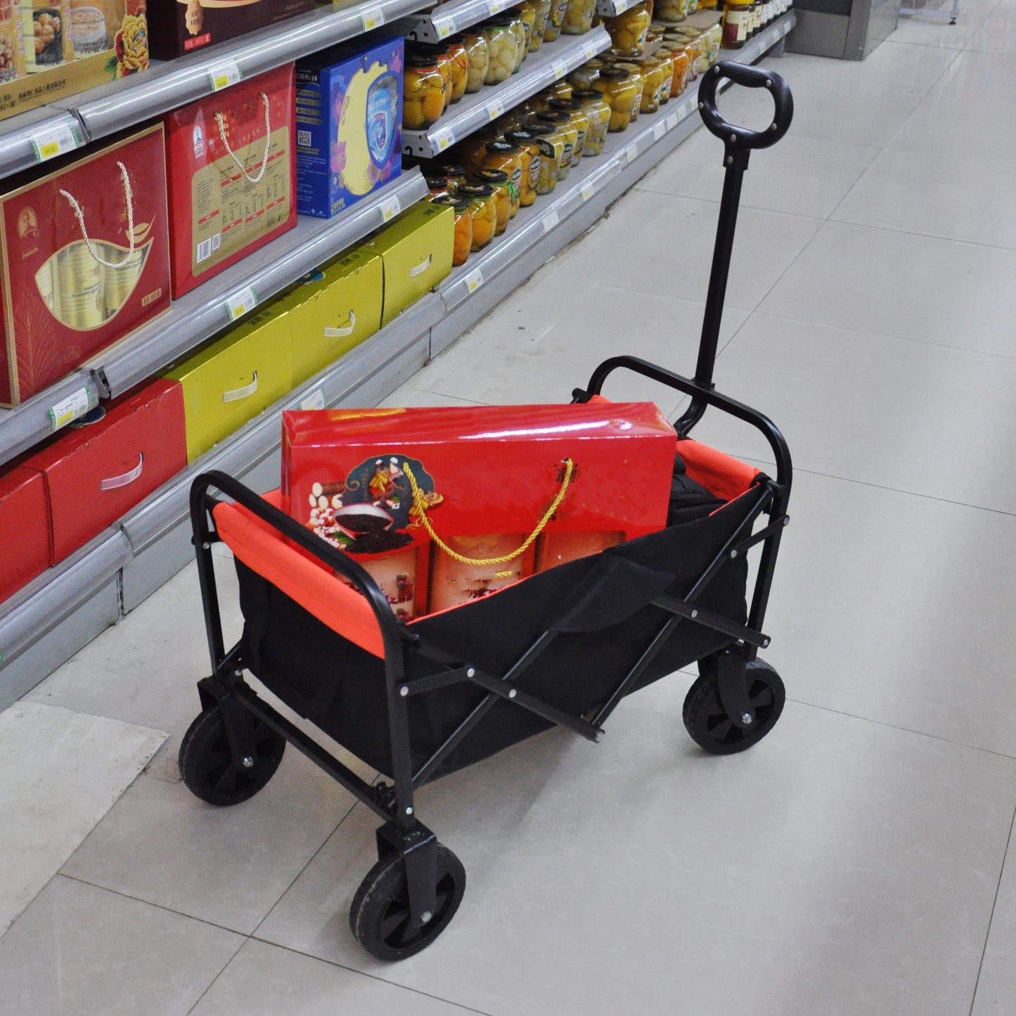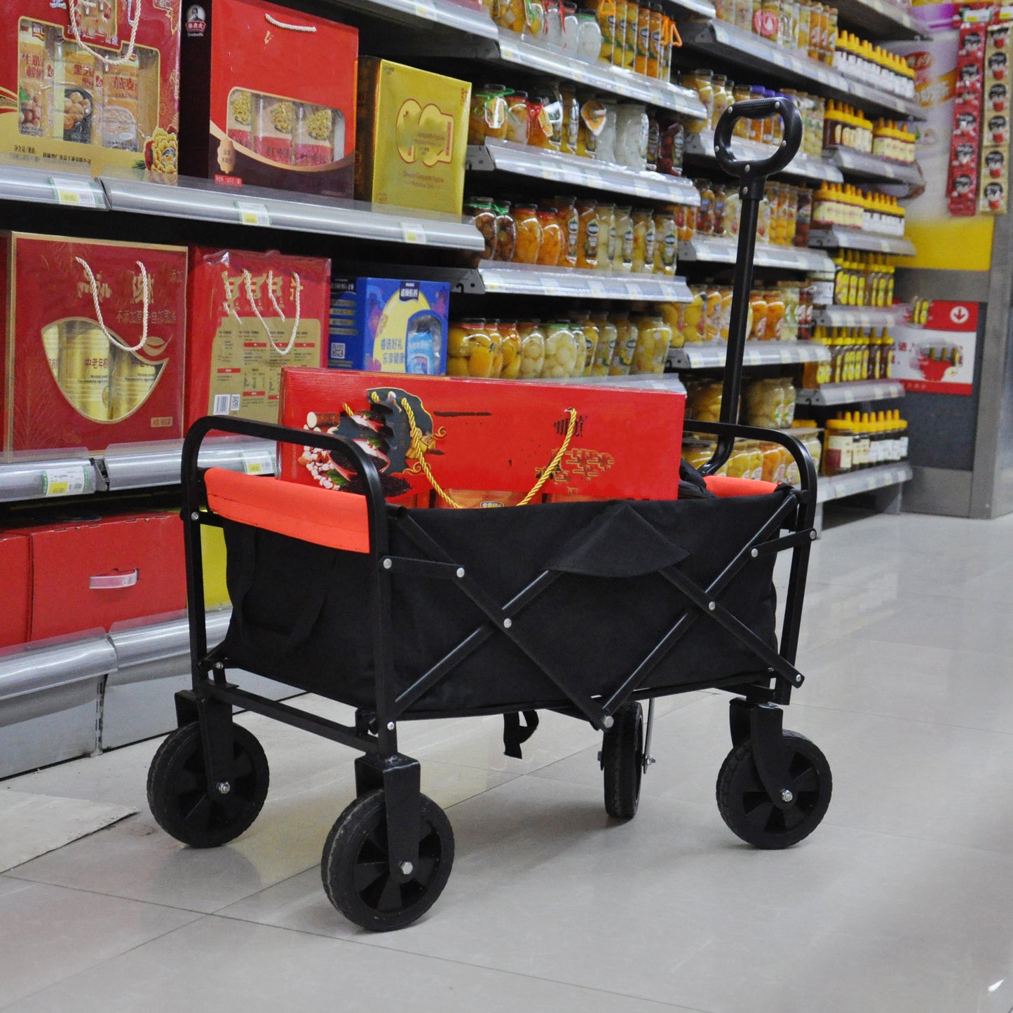 - No matter the scenario, this utility cart can handle it. From toys and groceries to everything in between, go with the Folding Outdoor Cart and lighten your load.