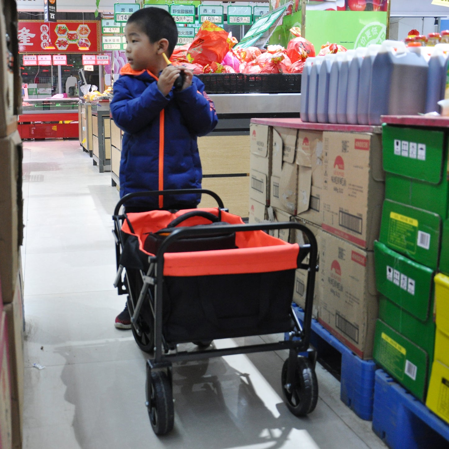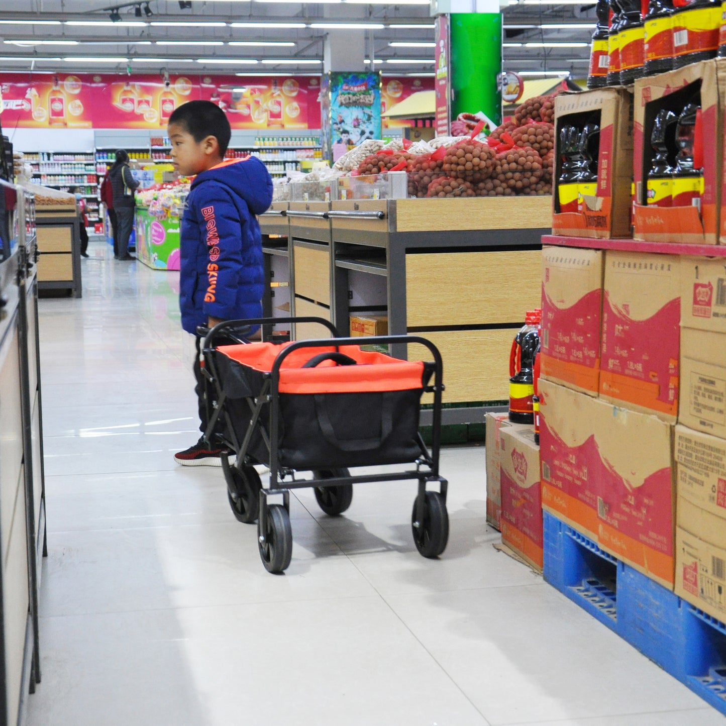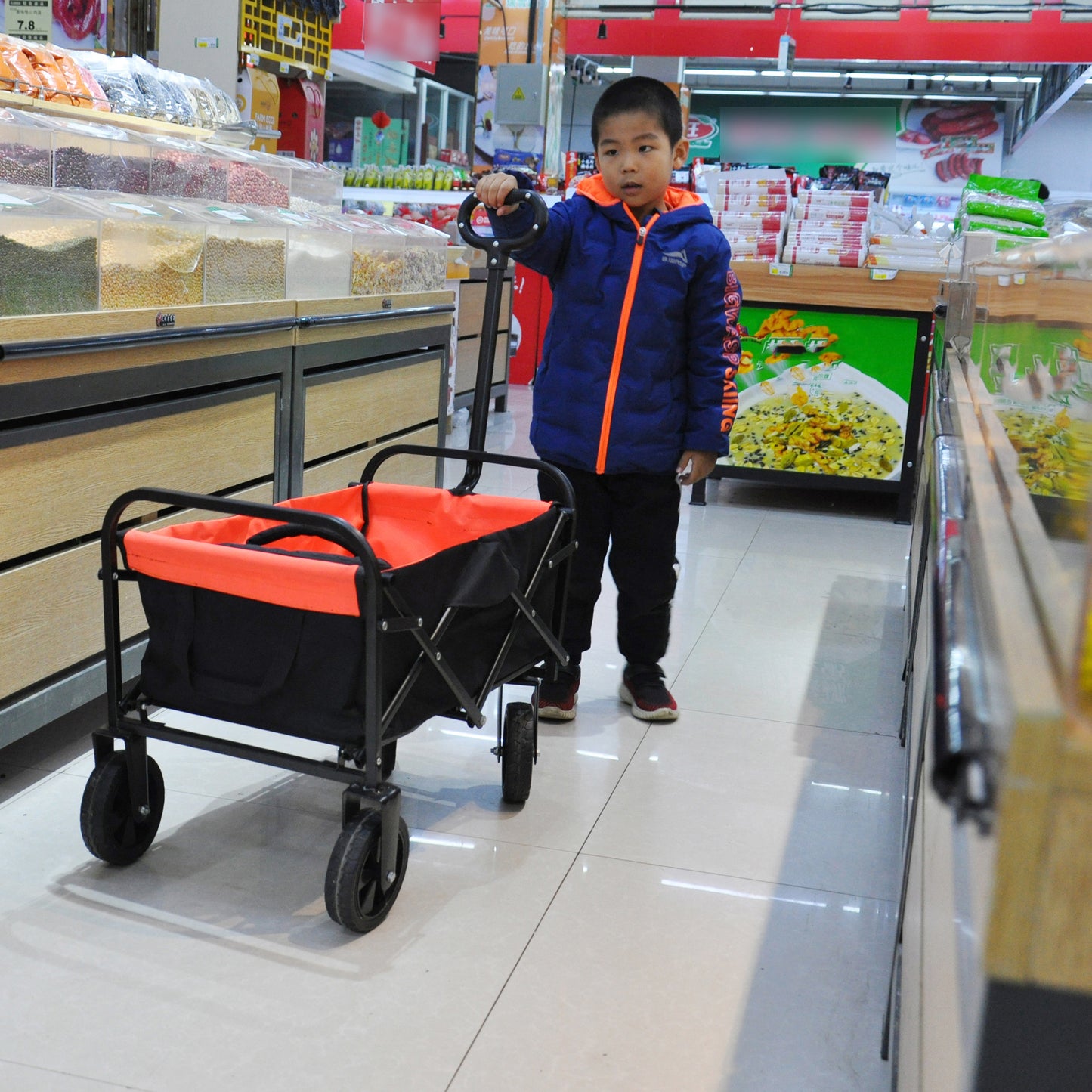 - No matter the scenario, this utility cart can handle it. From toys and groceries to everything in between, go with the Folding Outdoor Cart and lighten your load.