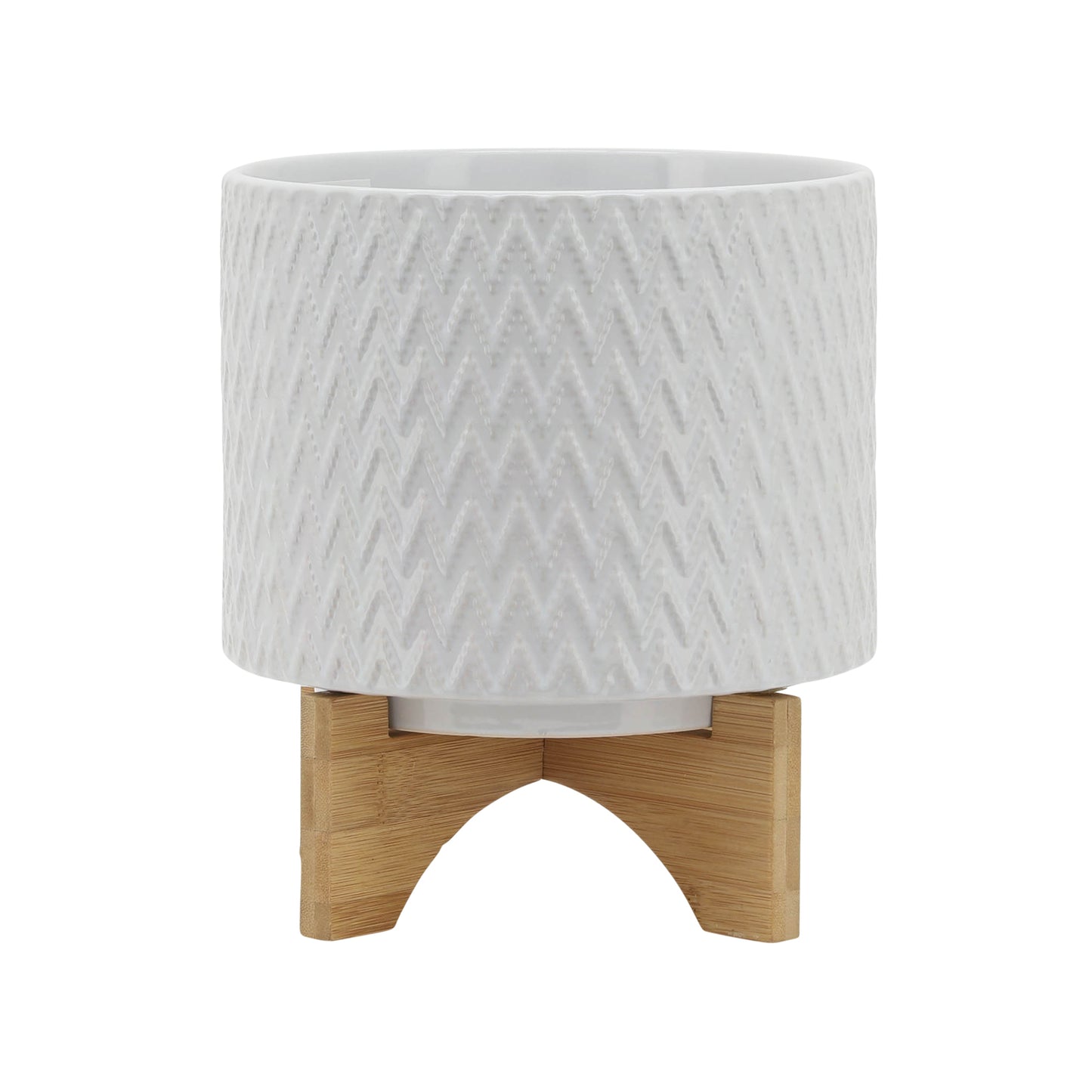 8" CHEVRON PLANTER W/ STAND, WHITE