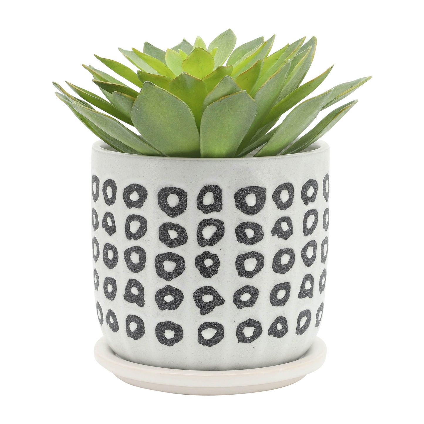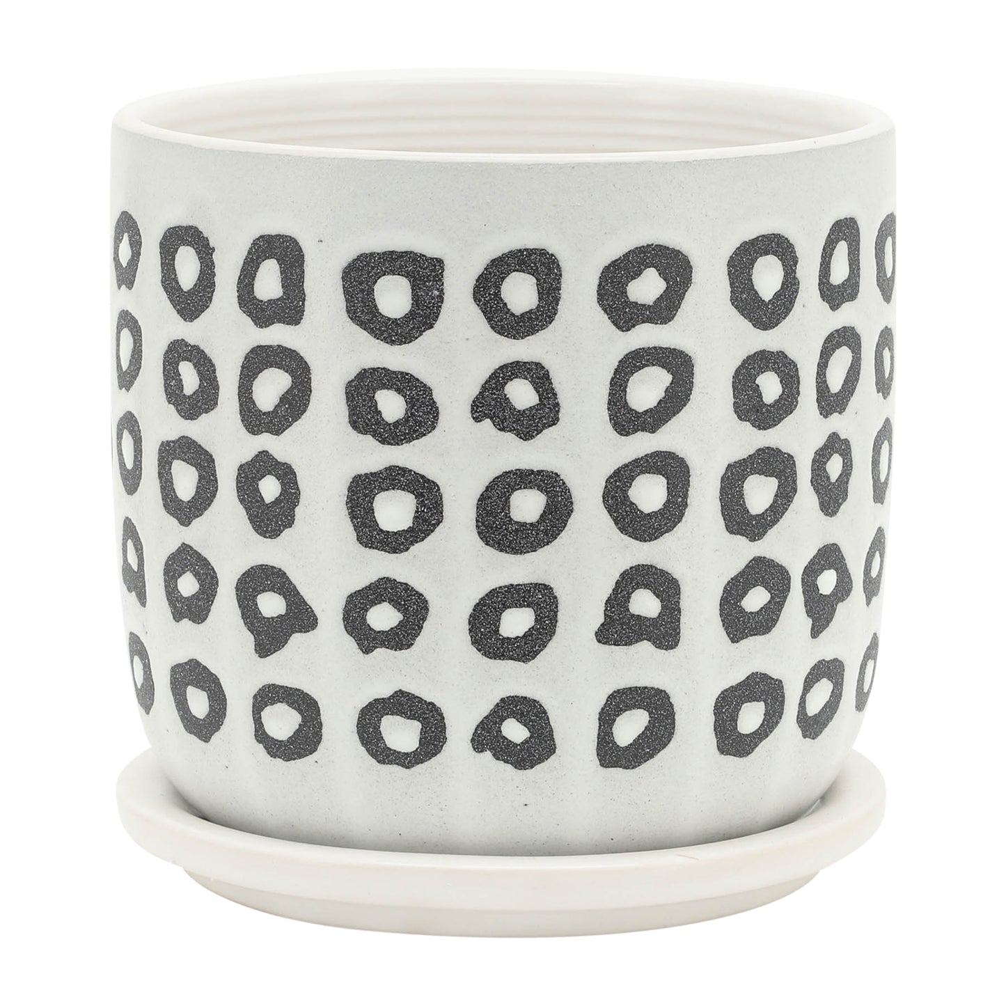 S/2 5/6" AZTEC PLANTER W/ SAUCER, BLACK