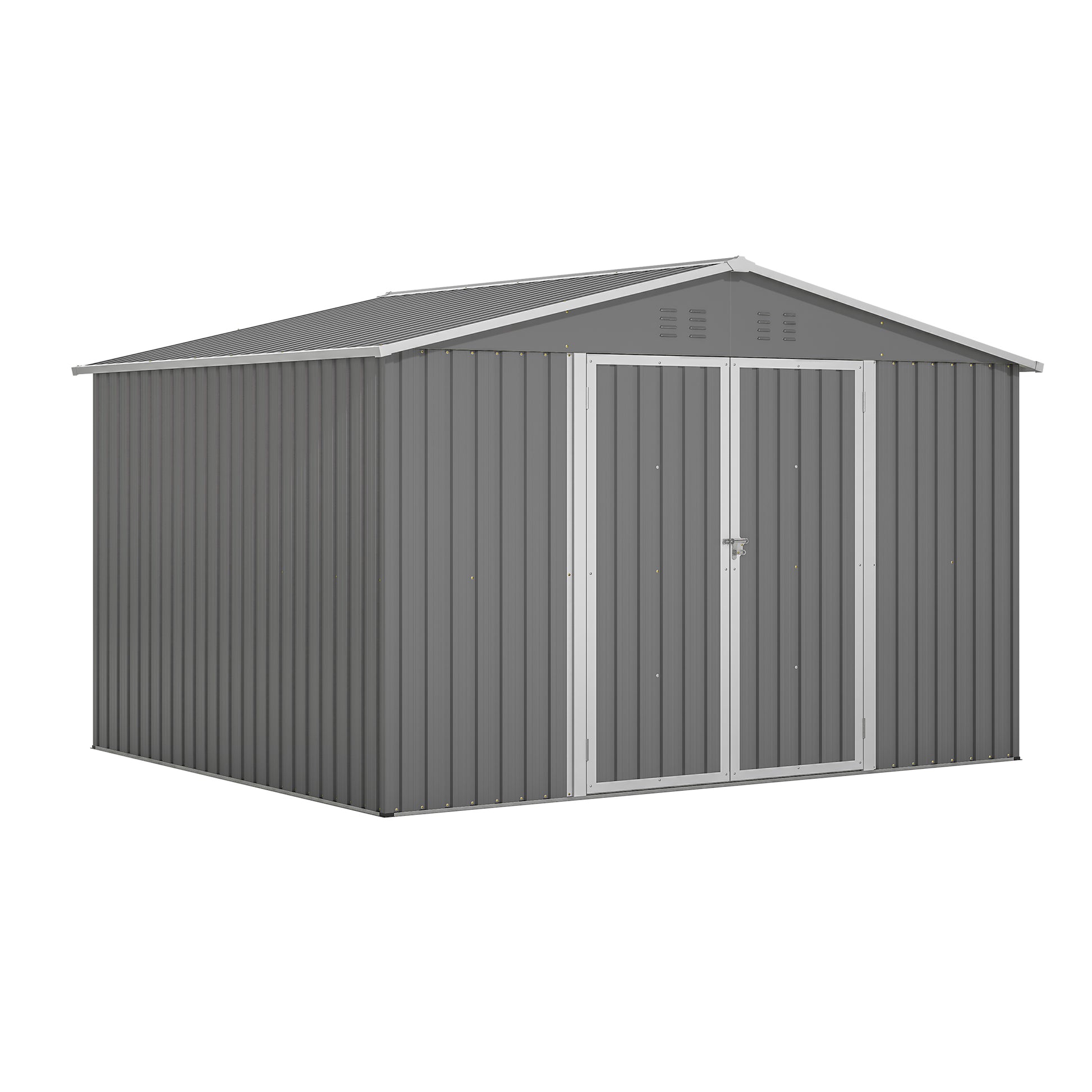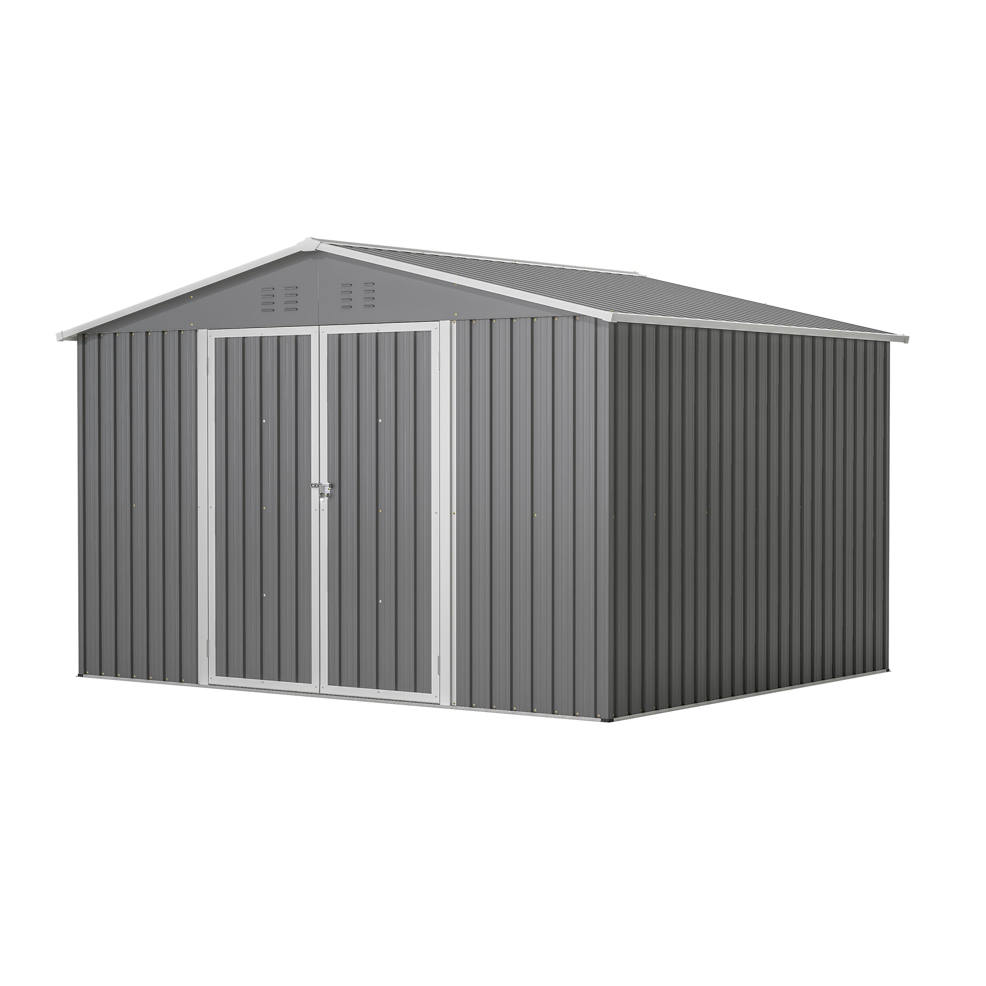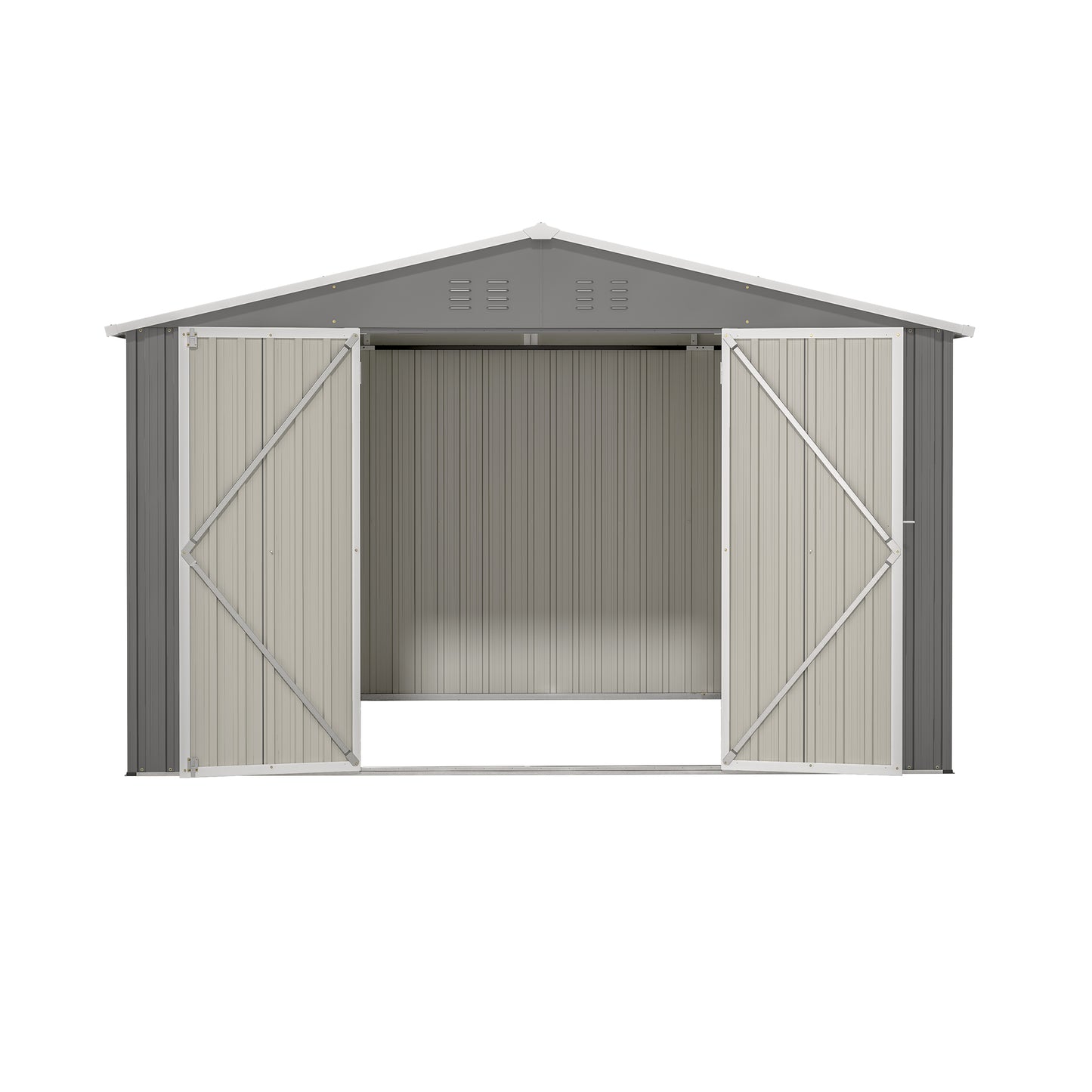 10X8 FT Outdoor Storage Shed, All Weather Metal Sheds withLockable Doors, Tool Shed for Garden, Patio, Backyard, Lawn, Grey